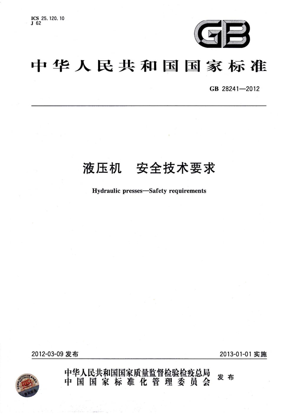 Drafting unit of national hydraulic press industry standards
