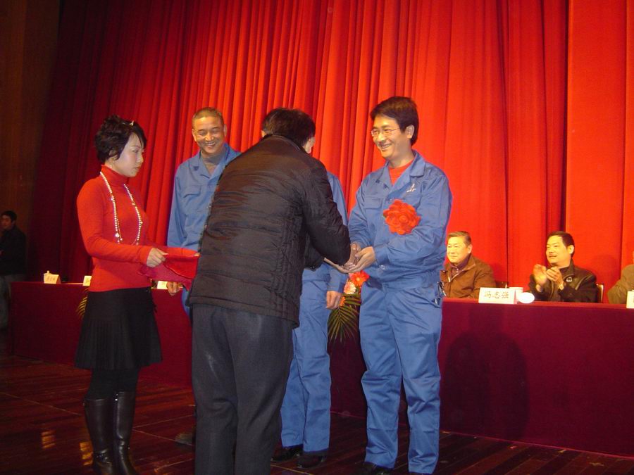 2010年元月29日,我公司在湖州升華音樂廳隆重召開年度工作總結(jié)大會,董事長陸建新同志向大會作了年度工作報告,大會同時向在2009年度作出了貢獻(xiàn)的各條戰(zhàn)線上的先進(jìn)工作者進(jìn)行表彰,其中“技術(shù)帶頭人”10名;“技術(shù)能手”18名;“操作能手”6名;“金點子”獲獎代表3名;年度銷售先進(jìn)競賽前3名及崗位練兵技能挑戰(zhàn)比賽獲獎人員52名。